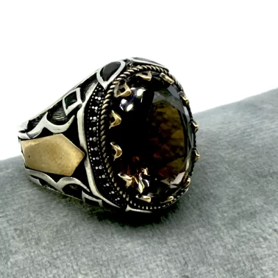 Dumanlı Kuvars Taşlı Erkek Yüzüğü